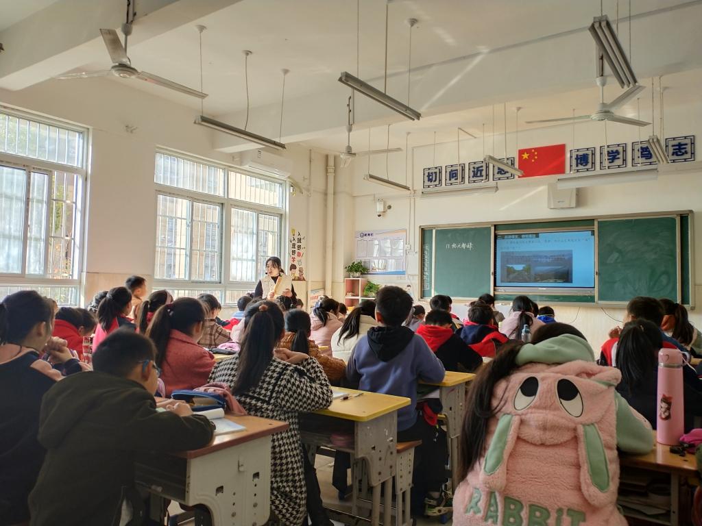 第二、三节课,检查指导组与实习生、实习基地指导老师共同深入课堂,分别听取了德赢官网实习生凡静的四年级(5)班数学课《平行四边形与梯形》、冯鑫玲的四年级(1)班语文课《爬天都峰》。两位实习同学的课堂教学能力和教学效果受到了指导组老师的充分肯定与赞扬。