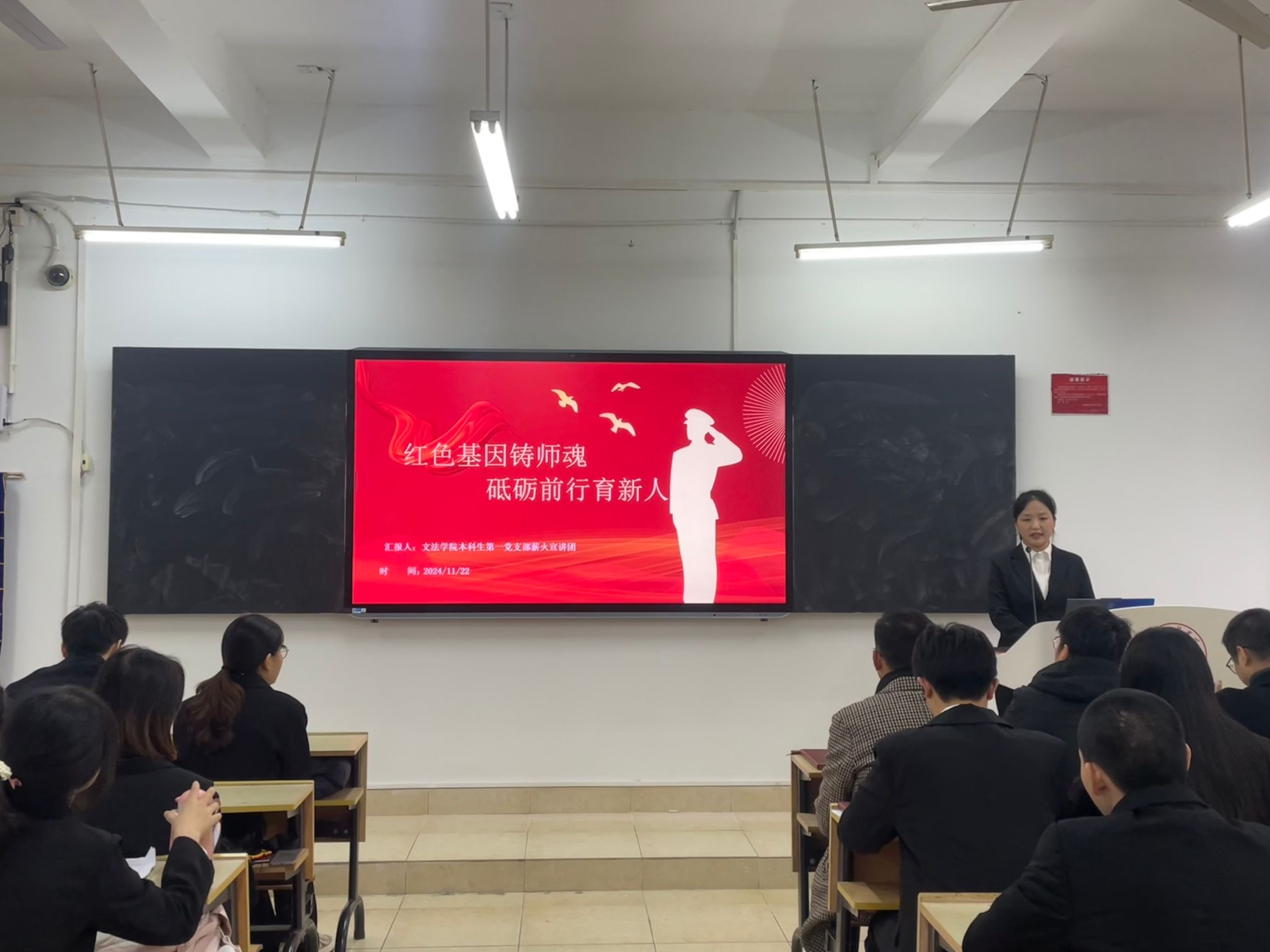 本网讯:11月22日,beat365正版唯一官网本科生第一党支部“薪火”宣讲团以“红色基因铸师魂,砥砺前行育新人”为主题开展宣讲活动。beat365正版唯一官网本科生第一党支部全体师生党员全员参与,共同感悟红色基因在教育领域的培育与传承。