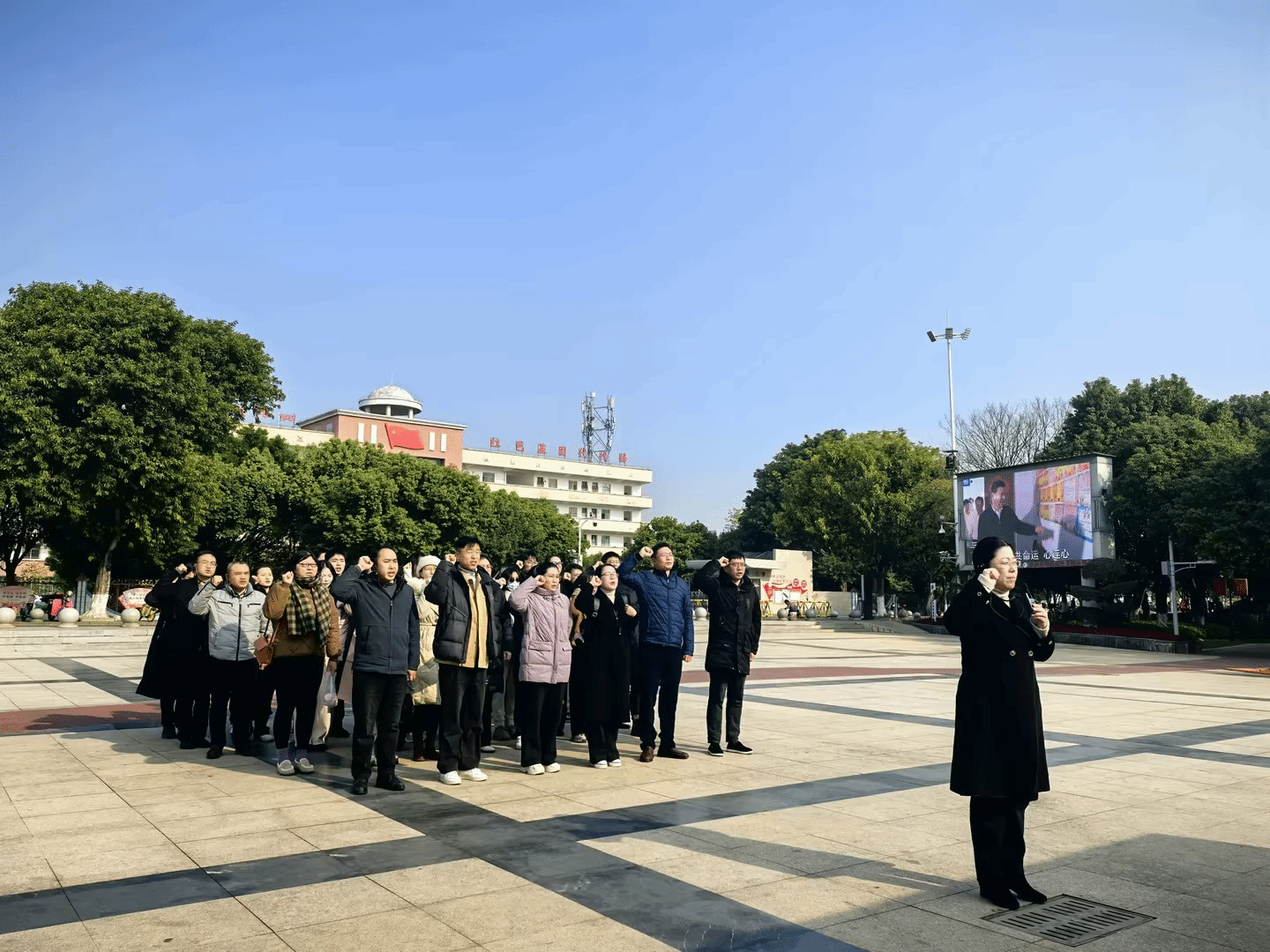 “我志愿加入中国共产党......”全体党员在中央红军长征出发纪念碑前,面对鲜艳的党旗,庄严宣誓,重温入党誓词。铿锵有力的声音,在广场回荡,向革命先烈表达着随时准备为党和人民牺牲一切的坚定决心。