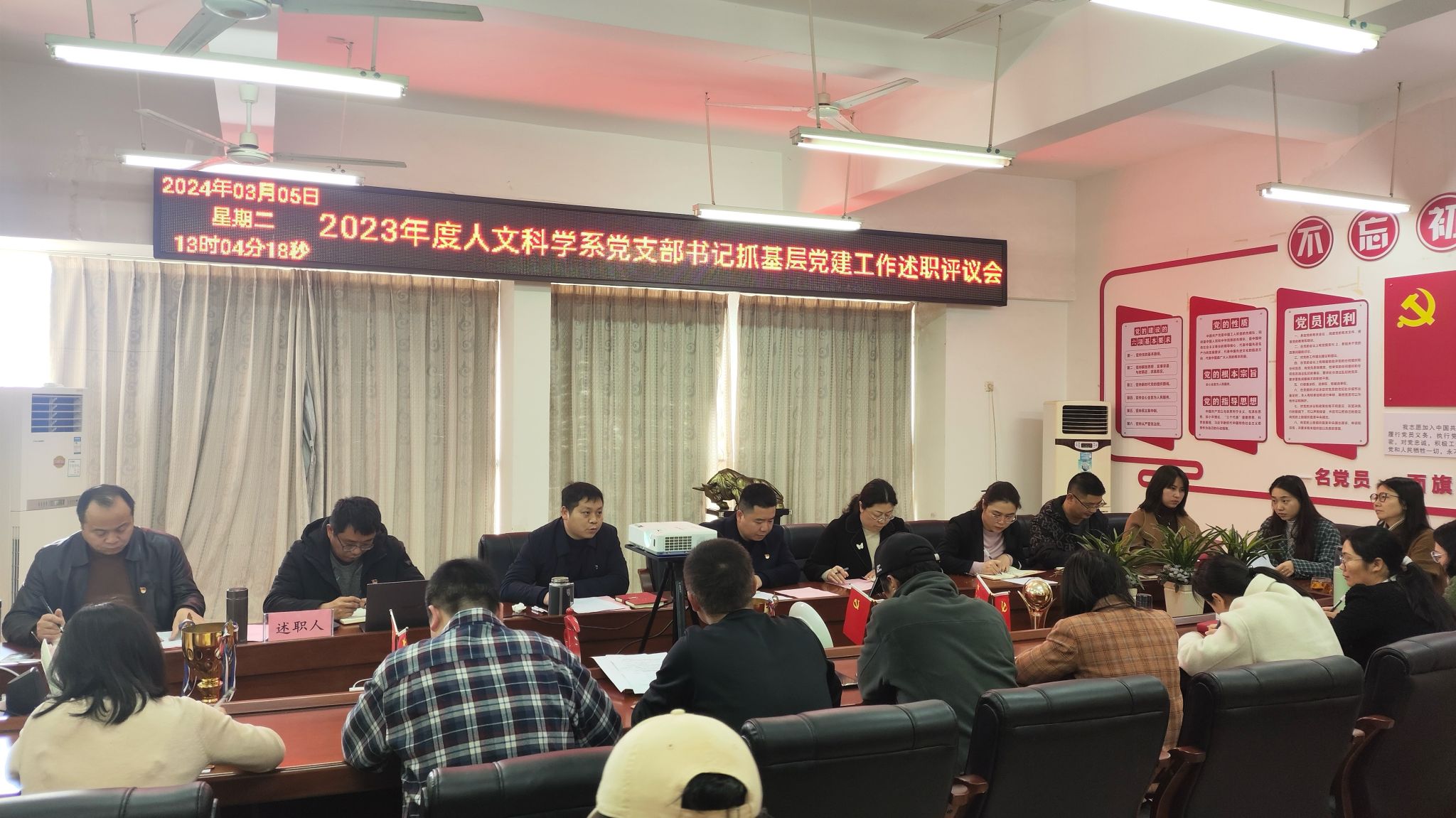 本网讯:3月5日下午,beat365正版唯一官网召开2023年度党支部书记抓党建工作述职评议会议。招生就业处副处长、人民武装部副部长杨智勇到会点评指导。会议由人文科学系党总支书记李国鹏主持。人文科学系党总支成员、各党支部书记、部分党员和群众代表参加会议。