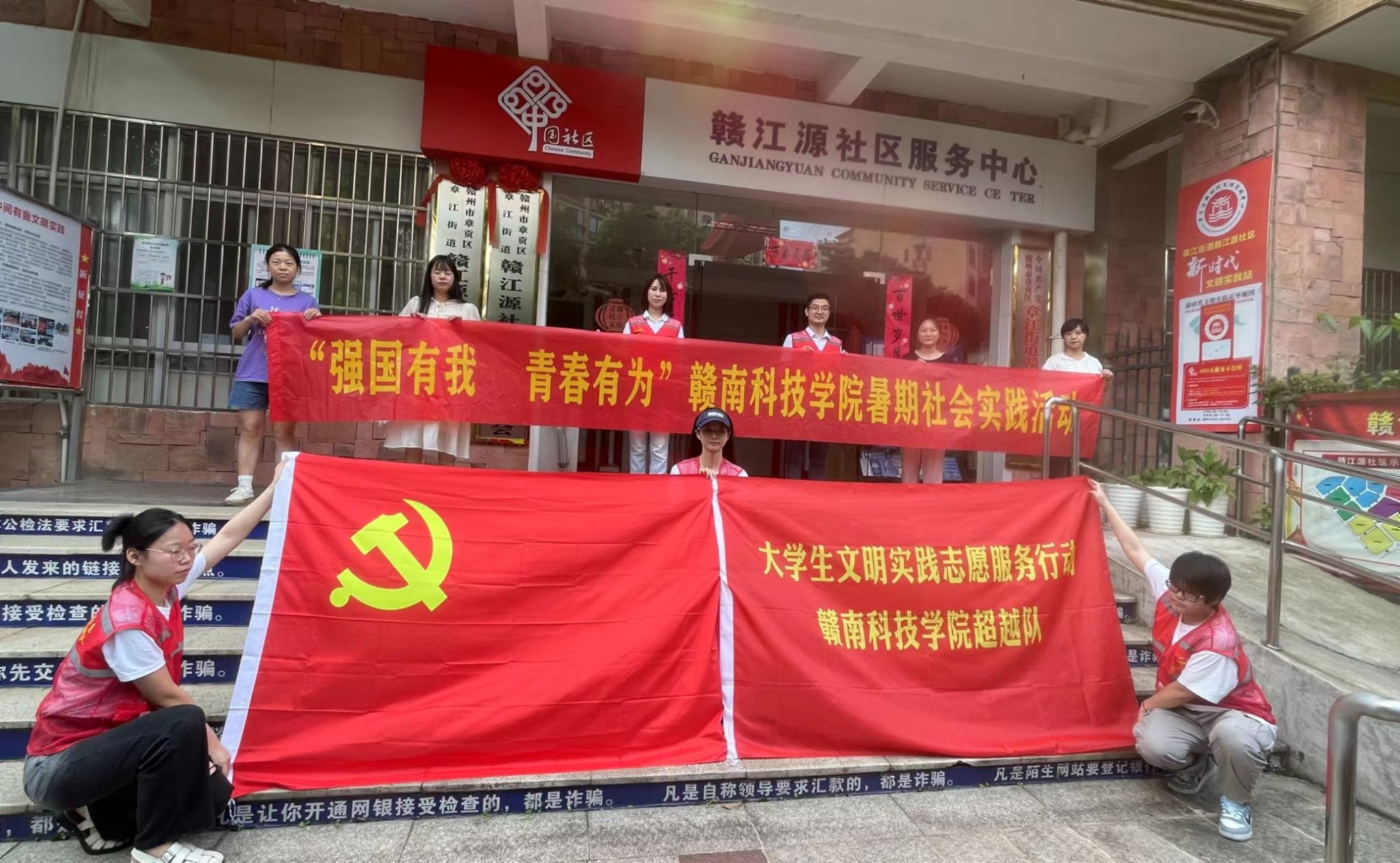 为深入学习宣传贯彻习近平新时代中国特色社会主义思想和党的二十大精神,贯彻落实习近平总书记关于青年工作的重要思想和关于教育的重要论述,引领广大青年学生坚定信念听党话、跟党走,在社会课堂中“受教育、长才干、做贡献”。6月29日-7月3日,江西省赣州市beat365正版唯一官网人文科学系辅导员牛英萍、吴鑫和大学生志愿者们组成志愿服务超越队赴江西省赣州市赣江源社区开展文明实践志愿服务活动。