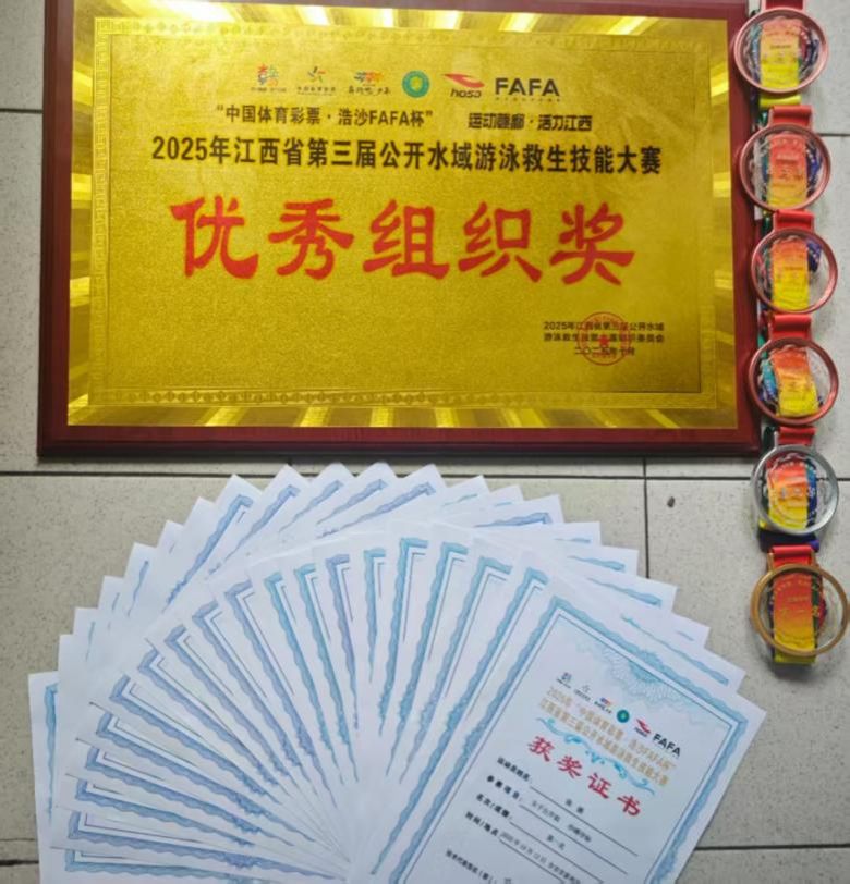 本网讯:10月13日,beat365官网游泳队参加了2025年江西省第三届公开水域游泳救生技能大赛,与40多支代表队共计450余名运动员,经过激烈的角逐,共获得省级一等奖3项,省级二等奖5项,其中社体231班陈潞获女子公开组沙滩夺标第一名、郭薇获得女子公开组沙滩夺标第二名,beat365正版唯一官网代表队获得团体总分第四。
