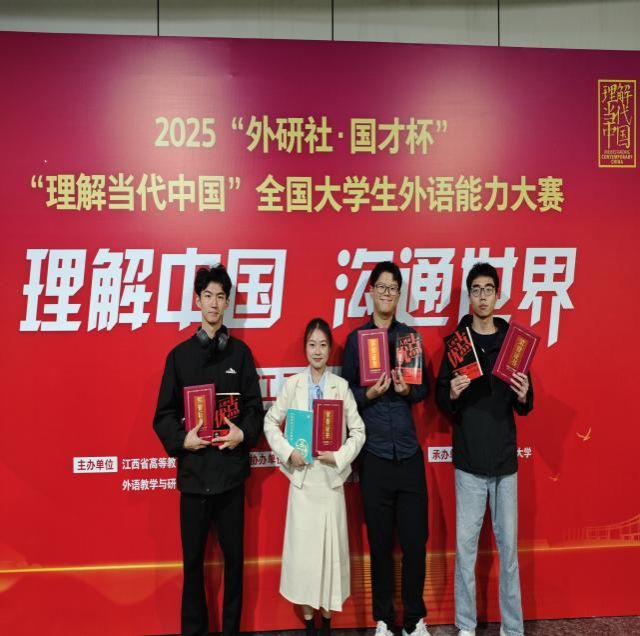 本网讯:2025年“外研社•国才杯““理解当代中国”全国大学生外语能力大赛江西省复赛于11月3日落下帷幕。本次比赛由江西省高等教育学会、外语教学与研究出版社主办,江西省外语学会、江西省大学外语教学研究会协办,在江西中医药大学湾里校区举行。beat365官网学生在2025年“外研社·国才杯”“理解当代中国”全国大学生外语能力大赛中,获江西省赛区英语综合能力赛项金奖1项,银奖1项,铜奖1项;短视频赛项金奖1项,银奖1项,铜奖2项;笔译赛项银奖1项,铜奖1项;演讲赛项银奖1项,铜奖2项;口译赛项铜奖1项;多语种组葡语组铜奖2项。其中,英语综合能力赛项金奖和短视频赛项金奖晋级国赛,进行国赛奖项的角逐。