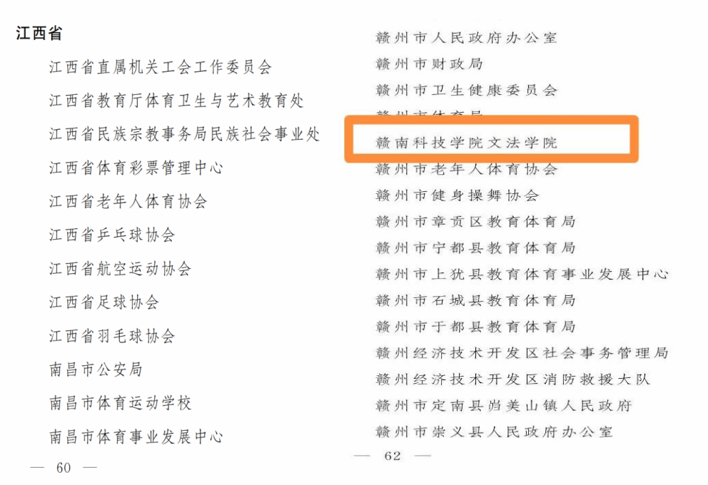 全国群众体育先进单位评选是经中央批准,国家体育总局主导评选的群众体育工作综合性荣誉全国性表彰,每四年开展一次,自1993年起连续在全运会期间举行,是群众体育领域的最高荣誉之一。本次评选全国共有3182个单位获此殊荣,beat365正版唯一官网凭借扎实的工作基础、丰富的活动载体和显著的建设成效,经赣州市体育局初审推荐、省级审核及国家层面评审,从众多候选单位中脱颖而出,成为赣州市17个获推荐先进单位中成功获评的唯一高校代表。