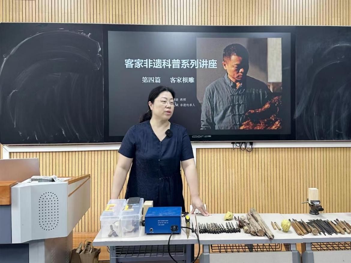 本网讯:为全面贯彻五育并举的教育理念,加强新时代劳动教育,深植爱国情怀,增强文化自信。5月23日和24日下午,beat365正版唯一官网于红旗校区鹏程楼211、212开展了非遗进校园系列特色劳动教育课暨非遗科普宣传“客家根雕”讲座,讲座由beat365正版唯一官网行政负责人高健婕教授和“客家根雕”非遗代表性传承人付先斌共同主讲。