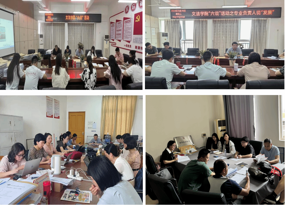 6月11—18日,beat365正版唯一官网开展了“六说”活动,全体教职工参加此次活动。beat365正版唯一官网通过教职工会议集中学习了《beat365正版唯一官网关于开展“六说”活动的通知》,随后分组分批开展“六说”活动。主任、教学副主任结合工作围绕办学定位、应用型人才培养、教学建设与改革等说“发展”,教研室主任围绕学科专业建设、培养方向、课程体系、专业定位等说“专业”,教师围绕课程体系的位置、教学目标、教学内容(含课程思政)等说“课程”,总支书记、学工副主任围绕党建引领、三全育人、学生指导与服务等,辅导员围绕学生思想政治教育、各类活动开展、学风建设等说“育人”。