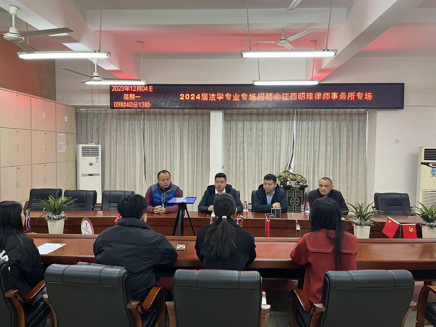为促进2024届毕业生顺利就业、优质就业。2023年12月4日上午,于崇善楼Z807。人文科学系邀请江西明理律师事务所党支部书记、11级法学专业校友周涛到我系开展校园专场招聘会。本次招聘会由人文科学系党总支书记李国鹏主持,主任助理王军堂,法学20级班主任龚云辉,20级法学同学参加了此次招聘会。