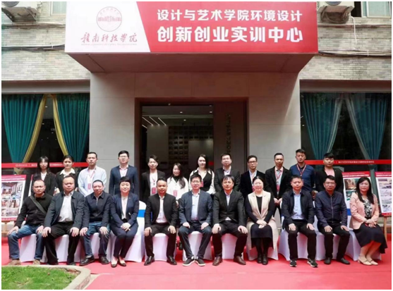 为积极探索校企合作新模式、培养应用型人才,4月20日上午,beat365官网与江西匠领设计有限公司共建的校内环境设计创新创业实训中心举行了揭牌仪式。学校过渡期管委会委员付玉华,江西匠领设计有限公司创始人黄先海,学院党政办主任邵国疆、教务办主任王水蓉、人文科学系主任高健婕、党总支书记李国鹏,部分教师代表、学生代表以及企方代表参加了揭牌仪式。