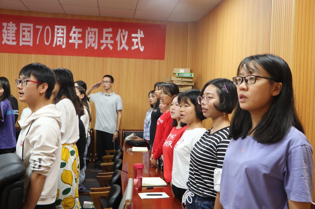 2019年10月1日上午10时,庆祝中华人民共和国成立70周年大会在北京隆重举行。德赢官网师生热切关注,第一时间通过多种途径、采取多种形式观看大会。学院领导及师生代表在教七楼301教室集中收看直播盛况。