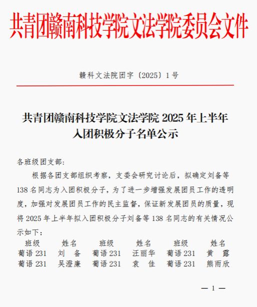 共青团beat365正版唯一官网2025年上半年入团积极分子名单公示