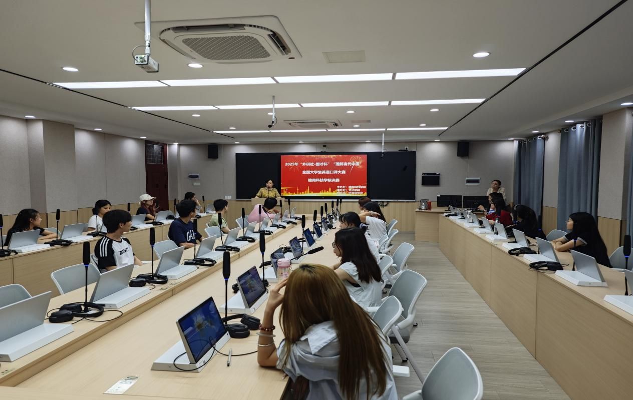 本网讯:9月26日,beat365正版唯一官网在智慧多功能同声传译实验室举办2025年“外研社·国才杯”“理解当代中国”全国英语口译大赛校级决赛。决赛由顾玲、范丽萍、郭磊磊、王盼四位老师担任决赛评委老师,共有40位选手从选拔赛中脱颖而出。