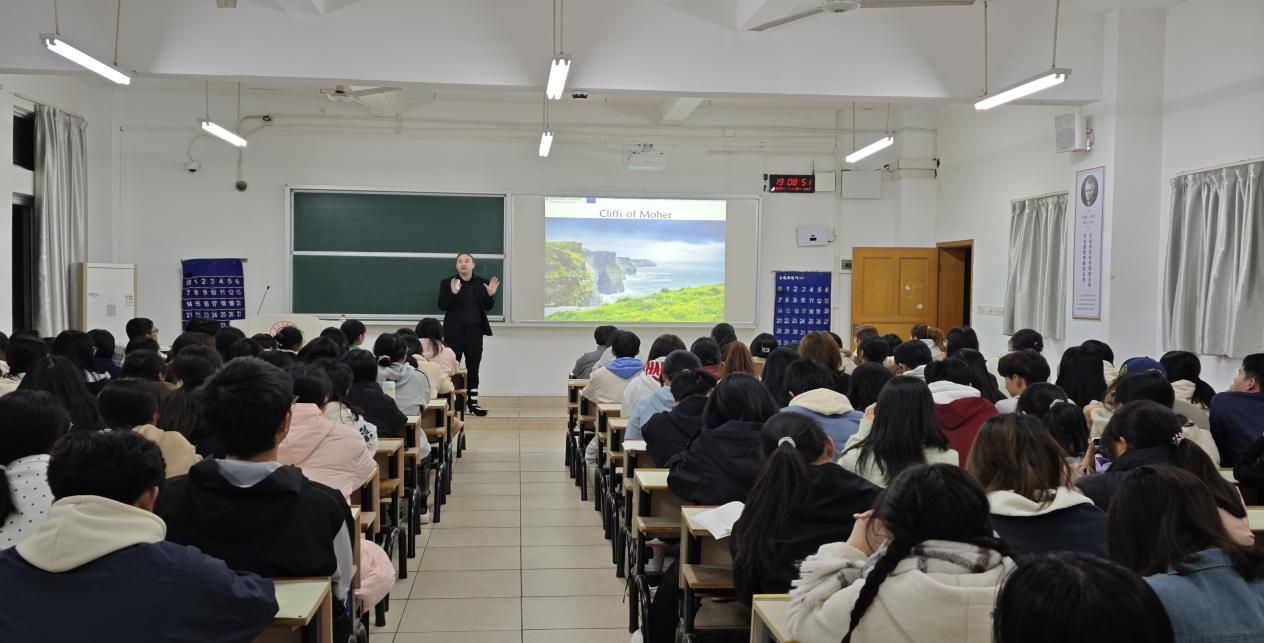 讲座中,Donal外教从人文、地理、习俗、饮食等生动具体的案例讲解和现场互动交流等方式,将原本抽象的文化概念转化为易于理解和感知的具体内容,使同学们能够切实感受到不同文化之间的差异与共通之处。在互动环节中,Donal外教与现场的师生就爱尔兰的文化习俗以及如何开展跨文化交际等问题进行了热烈的讨论。