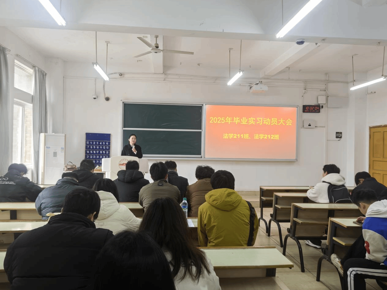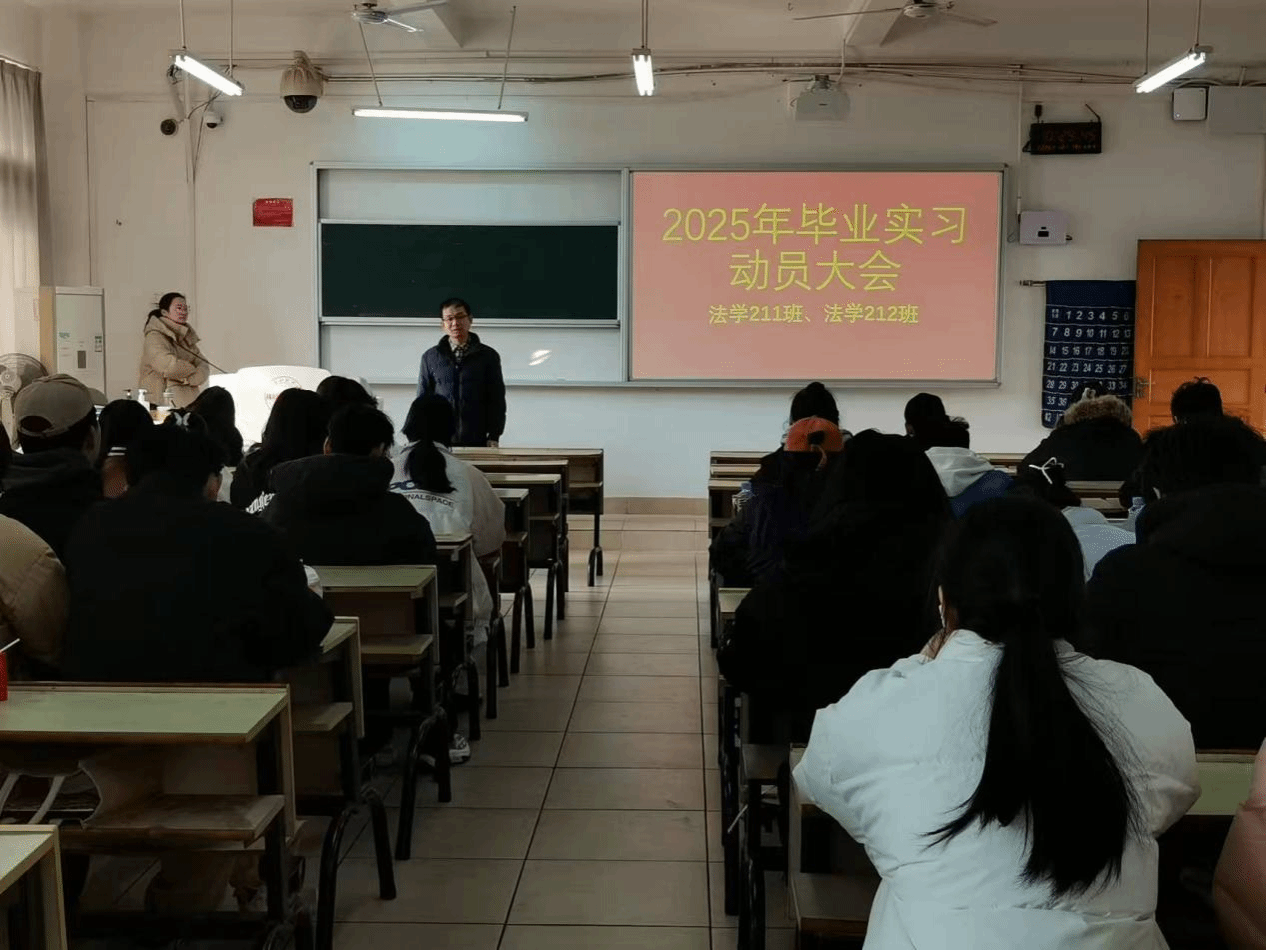 为提高法学专业学生毕业实习意识,提升法学专业就业质量,12月25日,beat365正版唯一官网法学教研室在教学主楼Z117教室召开了2025届毕业生实习动员大会。法学教研室主任王晓伟、班主任欧阳东及法学2025届全体毕业生参加动员大会。