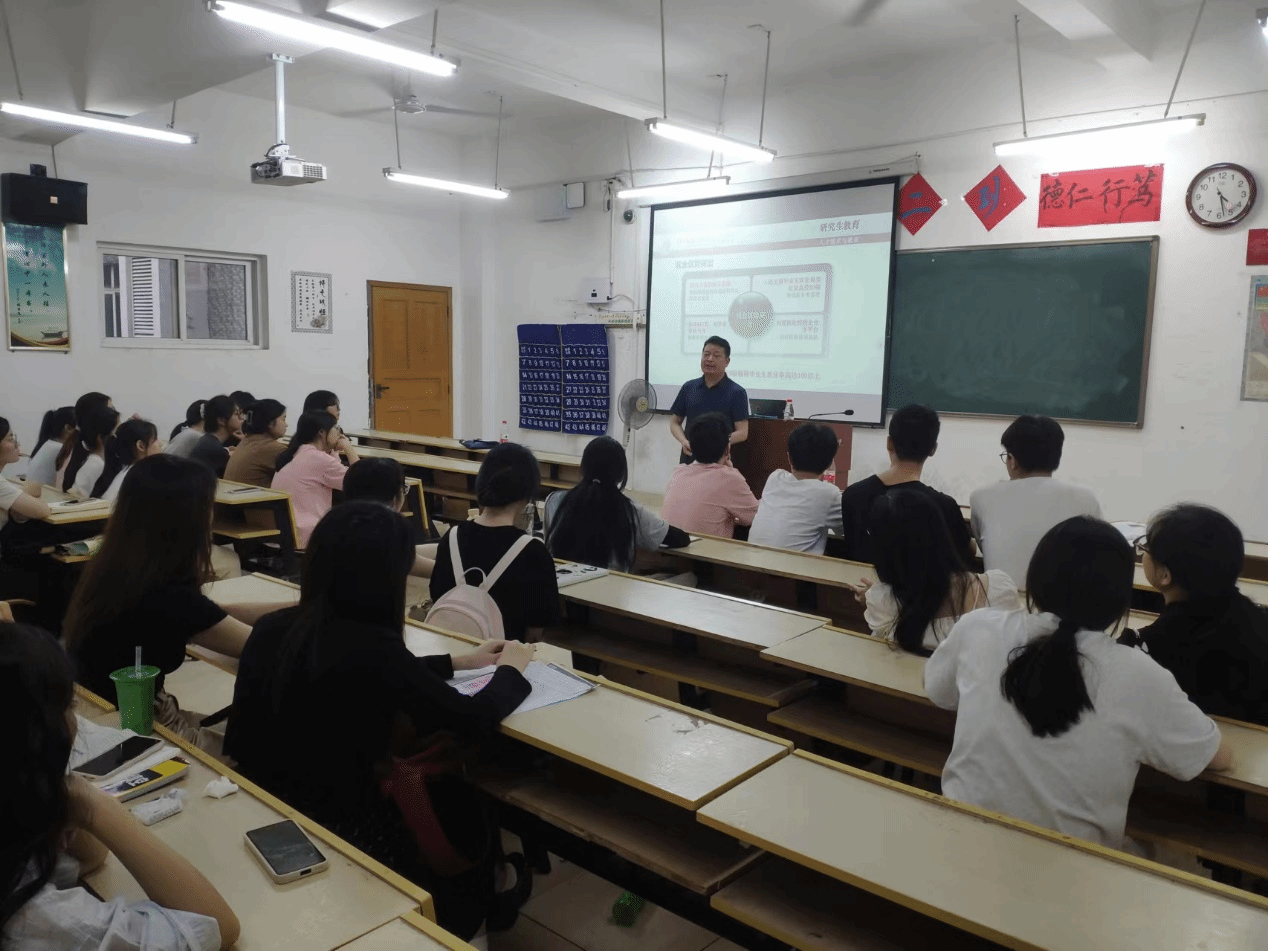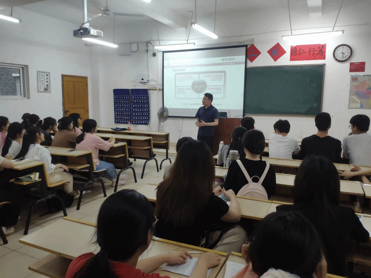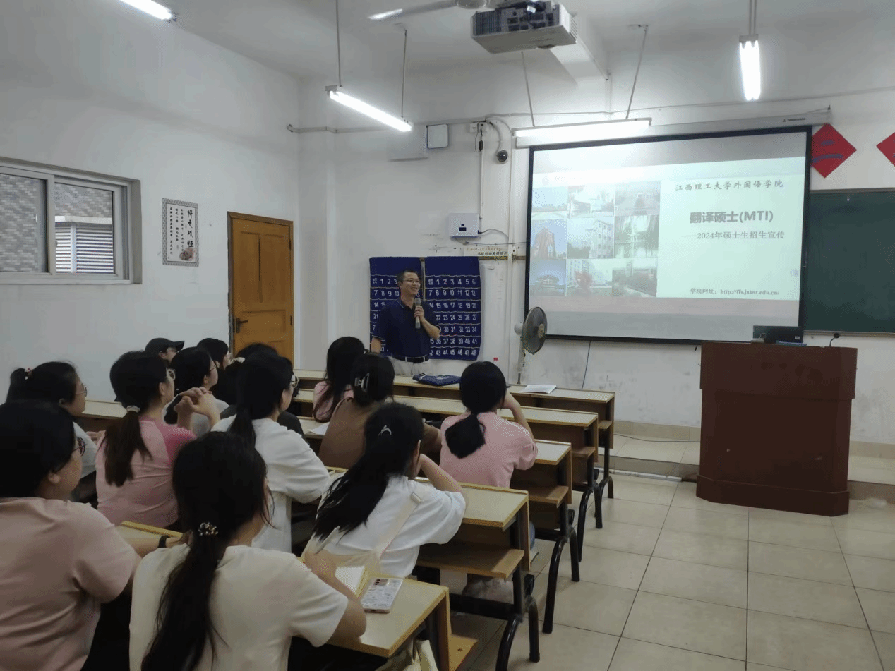 宣讲会上,张建平首先向同学们介绍了江西理工大学外国语学院的办学历史、师资力量、科研实力以及国际化办学特色。他强调,江西理工大学外国语学院一直以来都致力于培养具有国际视野、创新精神和实践能力的高素质外语人才,为国家和地方经济社会发展做出了积极贡献。接着,张建平围绕考研热点话题,为学生们详细解读了考研政策、报考流程、考试科目及备考策略等方面的内容。他结合自己的教学经验和成功案例,为学生们提供了许多实用的备考建议和技巧,让大家受益匪浅。