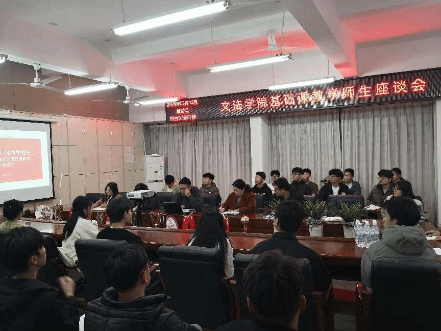为促进教学质量的提高,帮助学生更好地学习大学数学、大学英语课程,beat365正版唯一官网于3月12日晚在崇善楼Z807会议室召开师生座谈会。人文科学系主任高健婕、数学教研室和公外教研室正副主任以及全校各二级学院学生代表40余人参加了此次座谈会,会议由人文科学系副主任何建军主持。