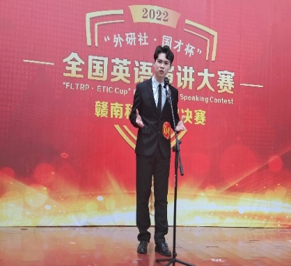 此次比赛分为定题演讲、即兴演讲两个环节,取综合得分排名前三者为特等奖。经过两个月的精心准备,选手们在舞台上尽情地挥洒才情,侃侃而谈,表现突出。第二环节中,面对评委老师的即兴提问,选手们敏捷的思维和精彩的回答博得了台下老师和同学们的阵阵掌声。经过激烈的角逐,最终有3名同学获校特等奖,5名同学获校一等奖,5名同学获校二等奖。