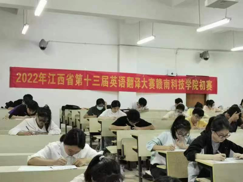 2022年10月25日晚,2022年beat365正版唯一官网英语翻译比赛暨2022年江西省第十三届英语翻译大赛选拔赛在主教学楼顺利举行。大赛由公共外语教研室、专业英语教研室共同承担了本次大赛的组织工作,共有400余名学生参赛。