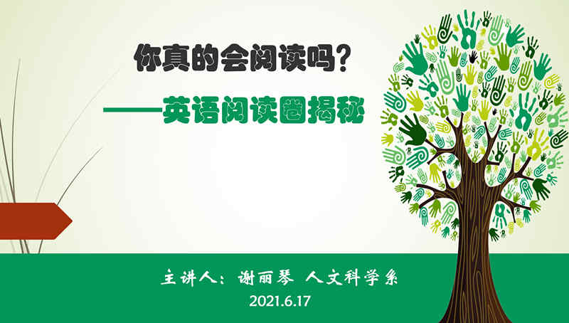 6月17日晚,我系专外教研室谢丽琴老师在主楼1D1教室为beat365官网学子举行了主题为“你真的会阅读吗?---英语阅读圈揭秘”的讲座。