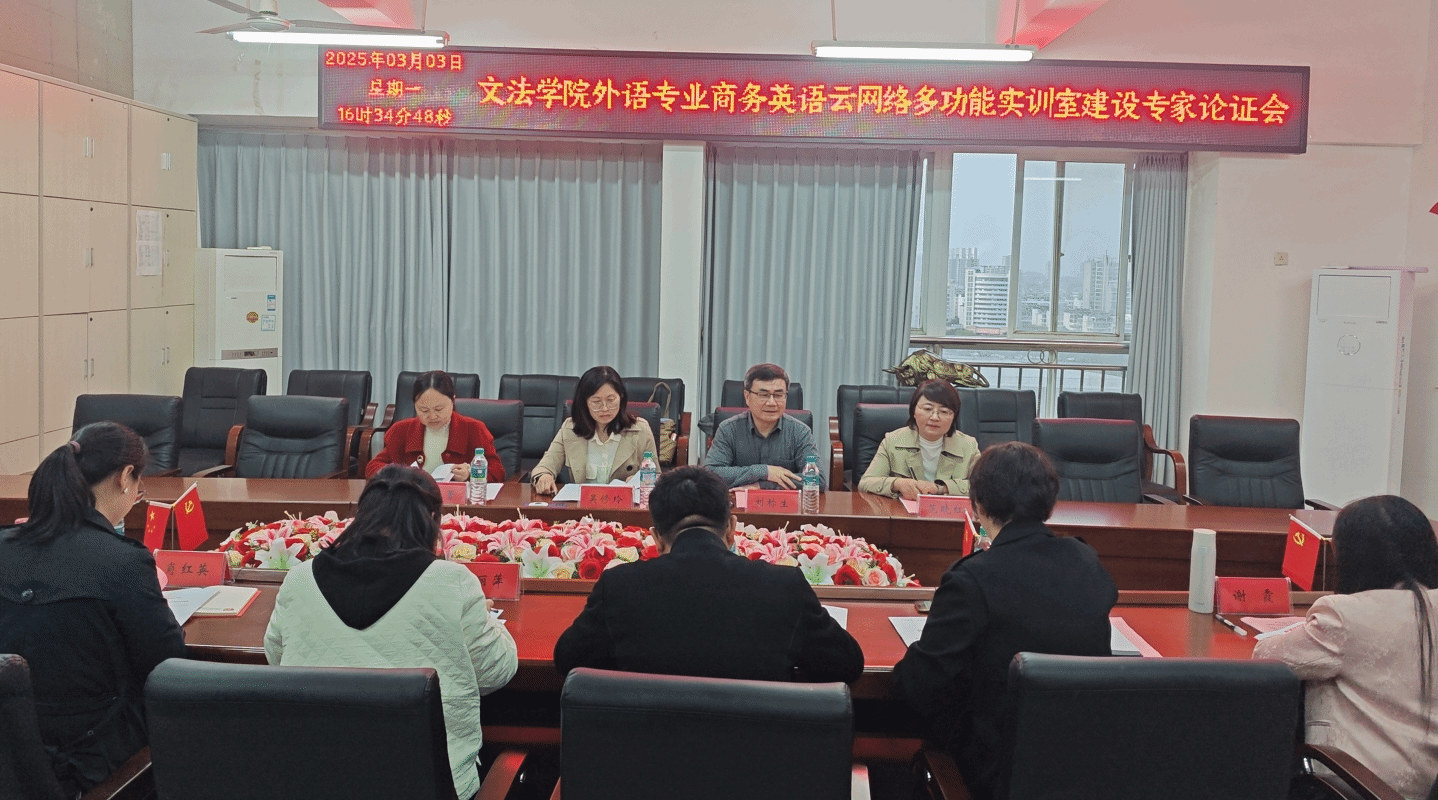 3月3日下午,为论证beat365正版唯一官网商务英语云网络多功能实训室建设项目的可行性,beat365正版唯一官网邀请了校外专家江西理工大学刘称生教授,赣南师范大学范晓红副教授,赣南医科大学吴修玲教授,校内专家beat365正版唯一官网邹艳菁副教授展开实训室项目建设前的论证会。beat365正版唯一官网党委委员何建军,英语教研室主任顾玲、副主任谢霞、副主任范丽萍,葡语教研室副主任肖红英参加了论证会。