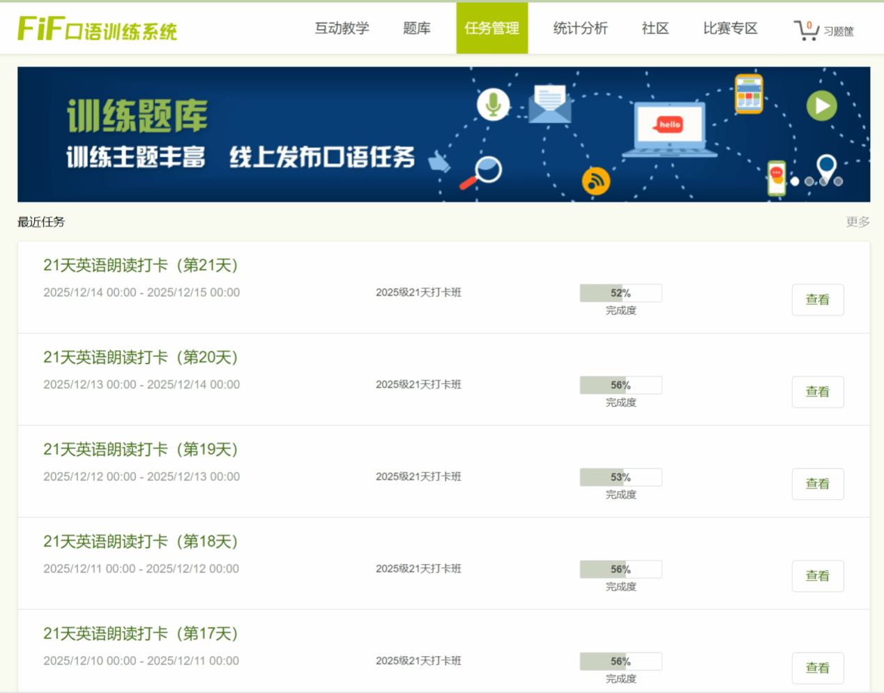 本次活动在内容设计与技术应用上亮点纷呈。活动创新性运用FiF口语训练系统的多元功能,提供涵盖丰富多样的英语朗读素材,系统搭载科大讯飞智能语音技术,支持线上发布每日口语任务,能从发音准确度、朗读流利度、语义完整度、词汇语法运用等多维度进行专业测评与实时反馈,帮助学生精准定位短板,定制个性化提升路径。