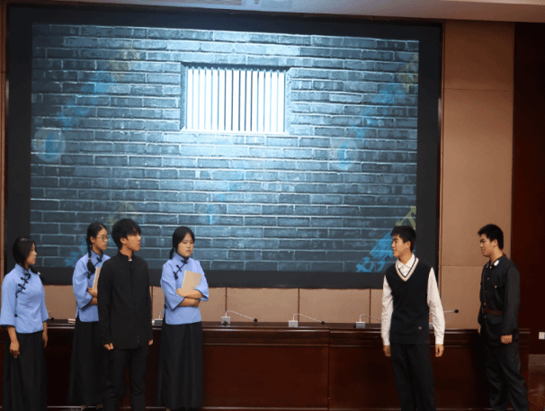 第一篇章“觉醒”,由主讲人法学242班黄怡祺同学以《传承五四精神,担当时代使命——走进北大红楼》为主题做团课分享。设计241班团支部表演话剧《破晓》以五四运动为背景,向观众展现了五四青年在面对反动势力时不屈的精神,黑夜即将迎来破晓。