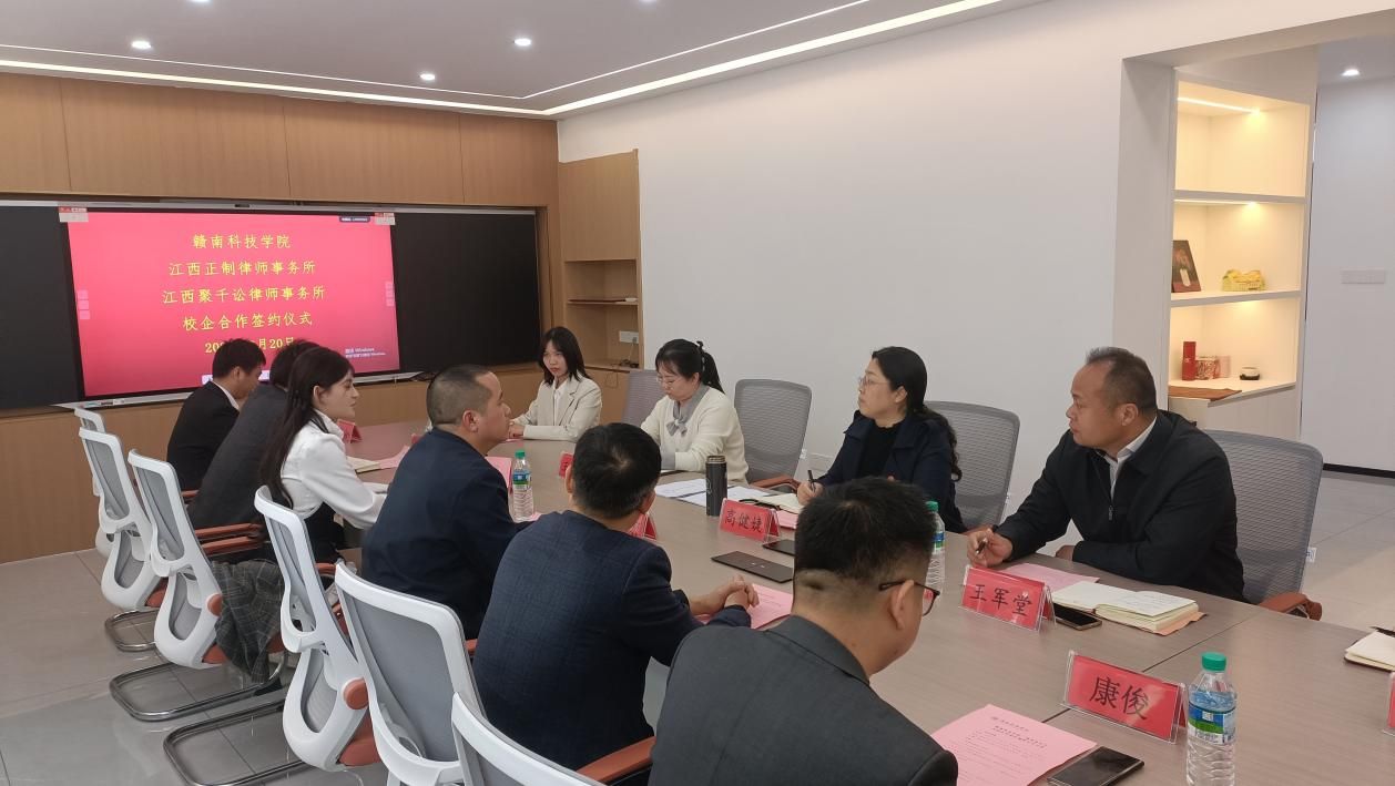 beat365正版唯一官网党委委员、副院长高健婕和正制律所主任梁树宏代表双方签署《校企合作协议》,并共同为“江西正制律师事务所法治人才培养基地”及“beat365正版唯一官网实践教学基地”授牌,正制律所高佳福、康俊、魏天慜、黄佩、陈成等见证签约授牌。