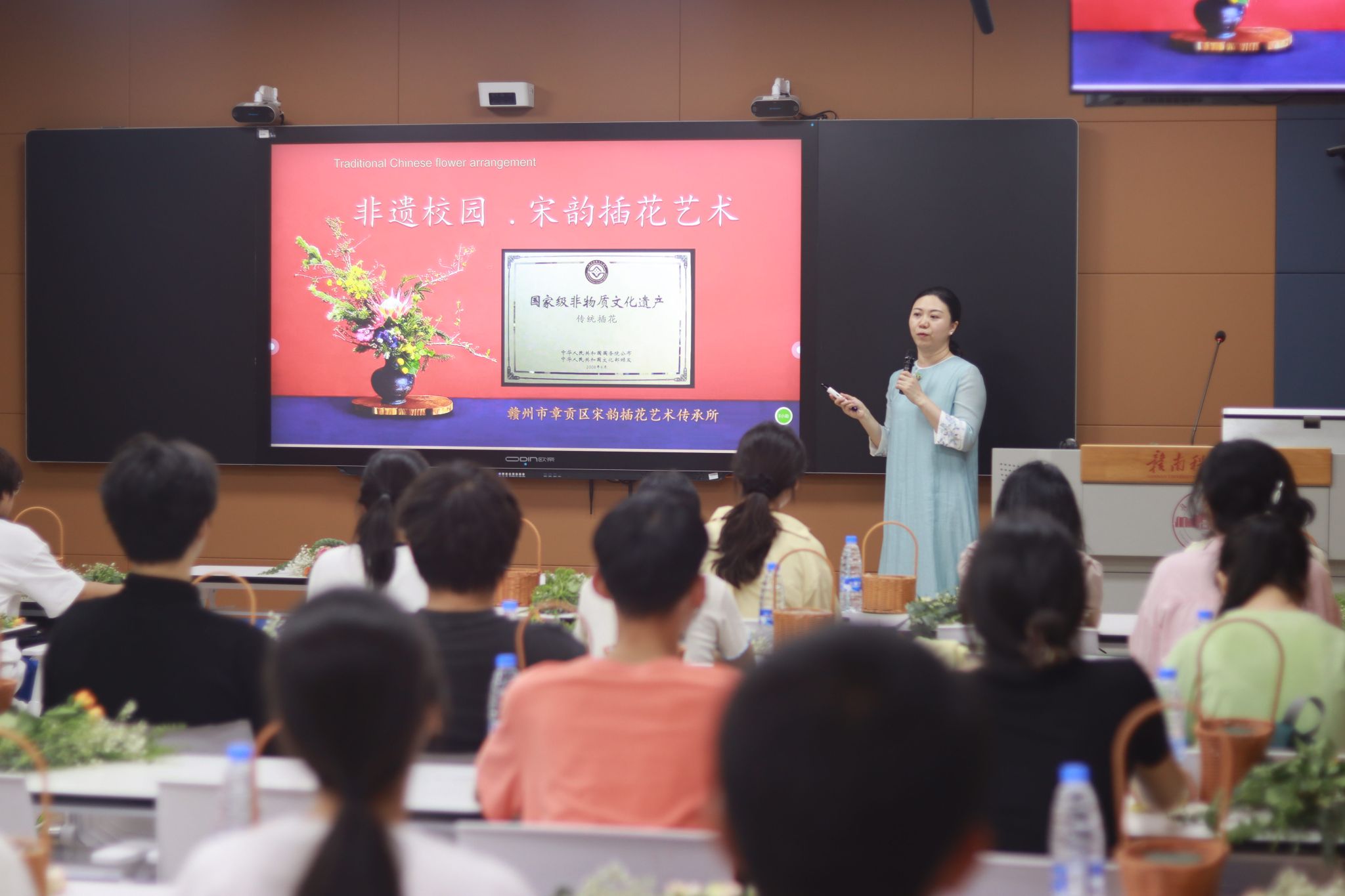 本网讯:5月22日,崇善楼Z628智慧教室内花香袅袅、笑语盈盈,第十二届5·25心理健康教育宣传月——“我心向阳,生如夏花”宋韵插花活动在此圆满举行。本次活动由学校学生工作处主办,beat365正版唯一官网承办。活动特邀章贡区宋韵插花艺术非遗传承人李华莹老师现场授课,来自各学院的40余名师生齐聚一堂,在千年花艺中感悟传统文化魅力,于指尖创作间疗愈心灵。