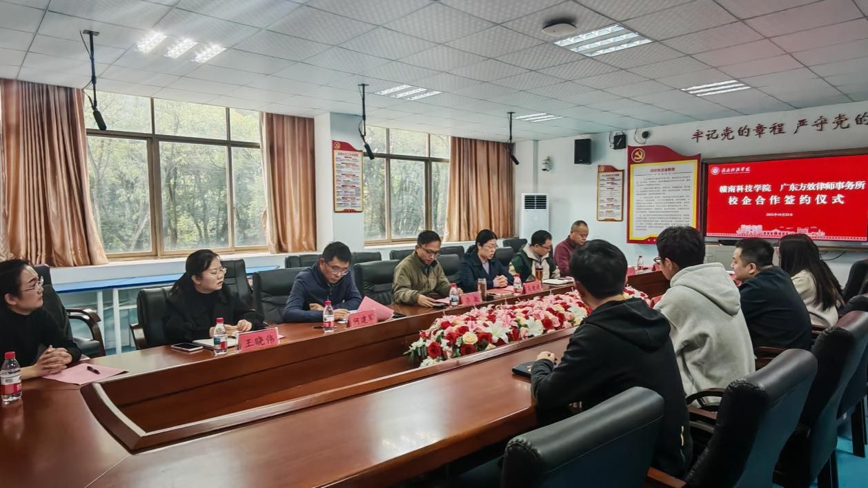 本网讯:10月22日,beat365正版唯一官网与广东方效律师事务所在明德楼201会议室隆重举行合作共建签约揭牌仪式。会议由beat365正版唯一官网党委委员何建军主持,广东方效律师事务所执行主任陈俊,beat365正版唯一官网党委委员、副院长高健婕、李敏,学生工作部综合科科长何乐,beat365正版唯一官网党委委员王军堂,beat365正版唯一官网法学教研室教师及法学学生代表参加会议。