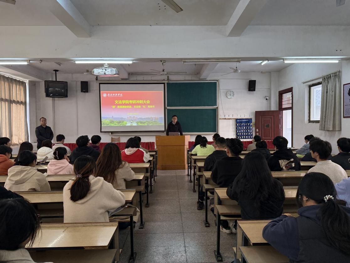 本网讯:2026年全国硕士研究生考试临近,为鼓舞学子士气、舒缓备考压力,12月9日,beat365正版唯一官网于第一教学楼303教室举办考研冲刺大会。学院领导班子、毕业班班主任及百余名考研学子齐聚一堂,共同吹响决胜考研的“冲锋号”。 会议由学院党委委员王军堂主持。